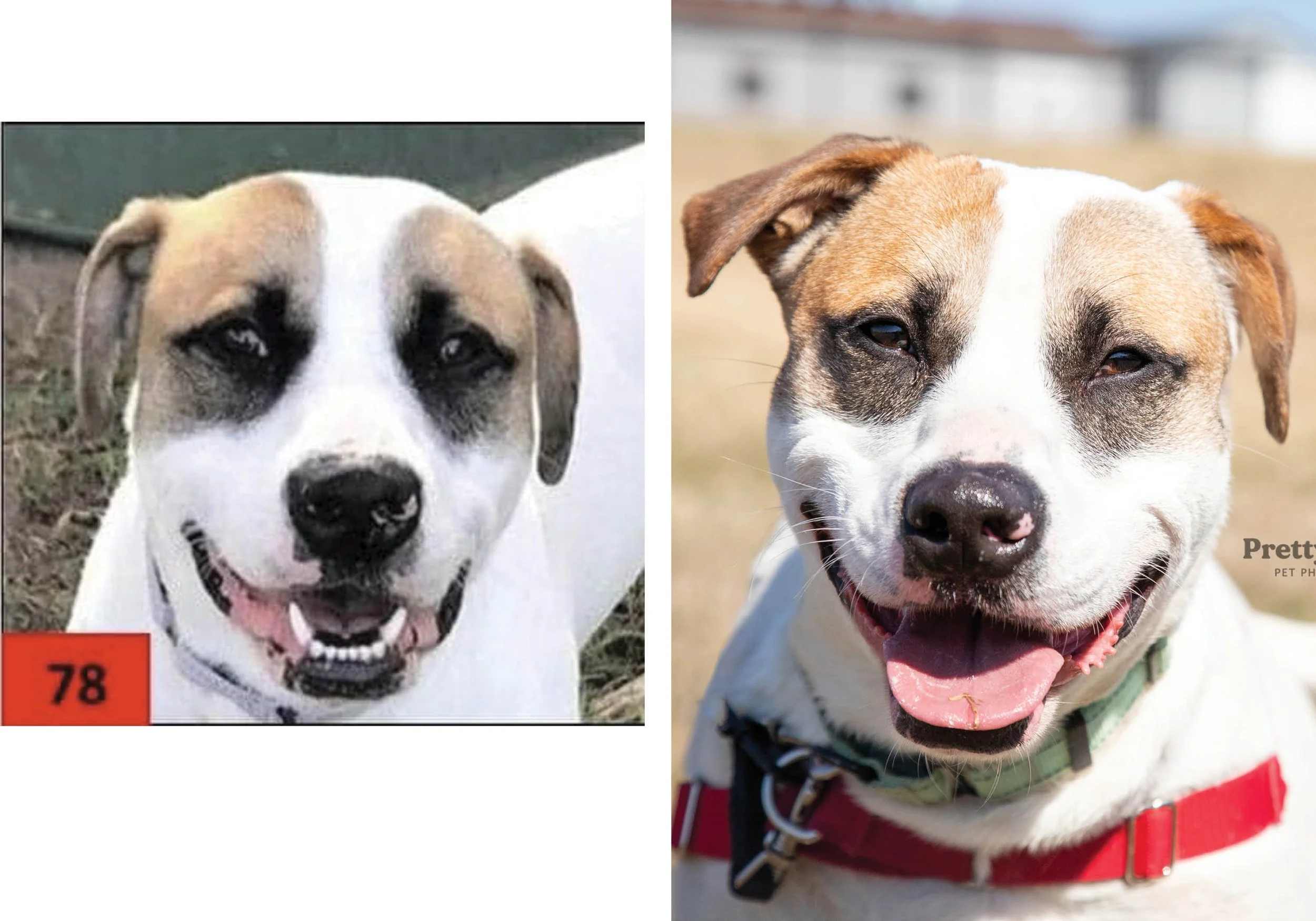 If all of the stars align, arranging and dedicating a few days a month to animal portraits for shelters can be very rewarding. Below, you will see a few comparison photos of volunteer/intake photos on the left vs my photos on the right. There is a huge difference in the portraits and it has the potential to get animals adopted quicker. I personally like to photograph the animals that have been at the shelter the longest and the ones that can never get a good photo taken of them. One photo can make a difference!!